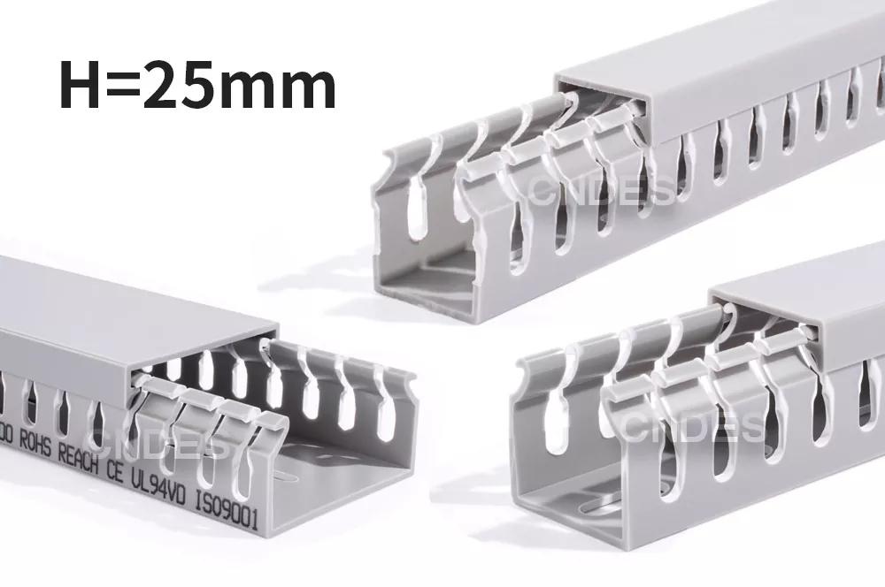 Αυτό το προϊόν είναι ένας αγωγός καλωδίωσης PVC χαμηλού ύψους με σχισμές που έχει σχεδιαστεί για να οργανώνει, να προστατεύει και να οδηγεί ηλεκτρικά καλώδια μέσα στους πίνακες ελέγχου. Το ύψος 25 mm επιτρέπει την εγκατάσταση: