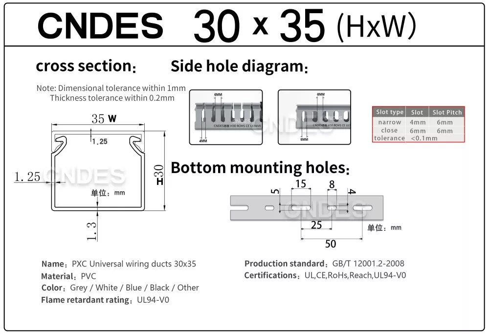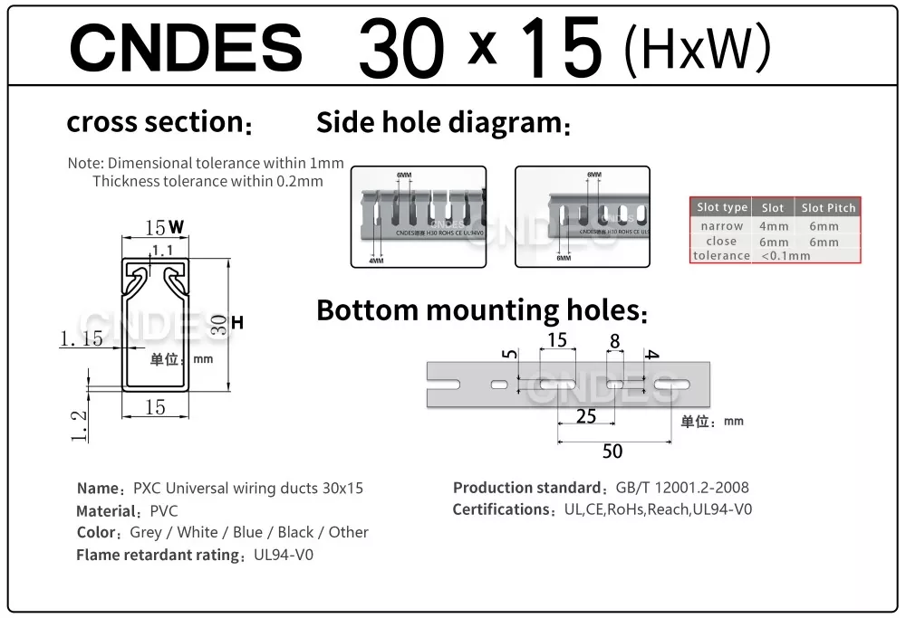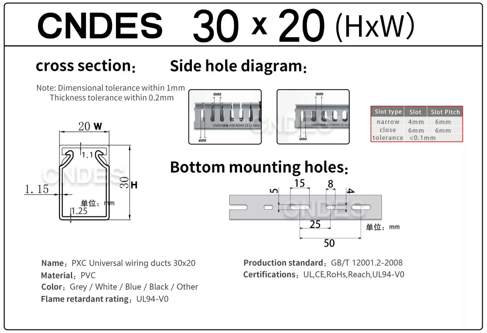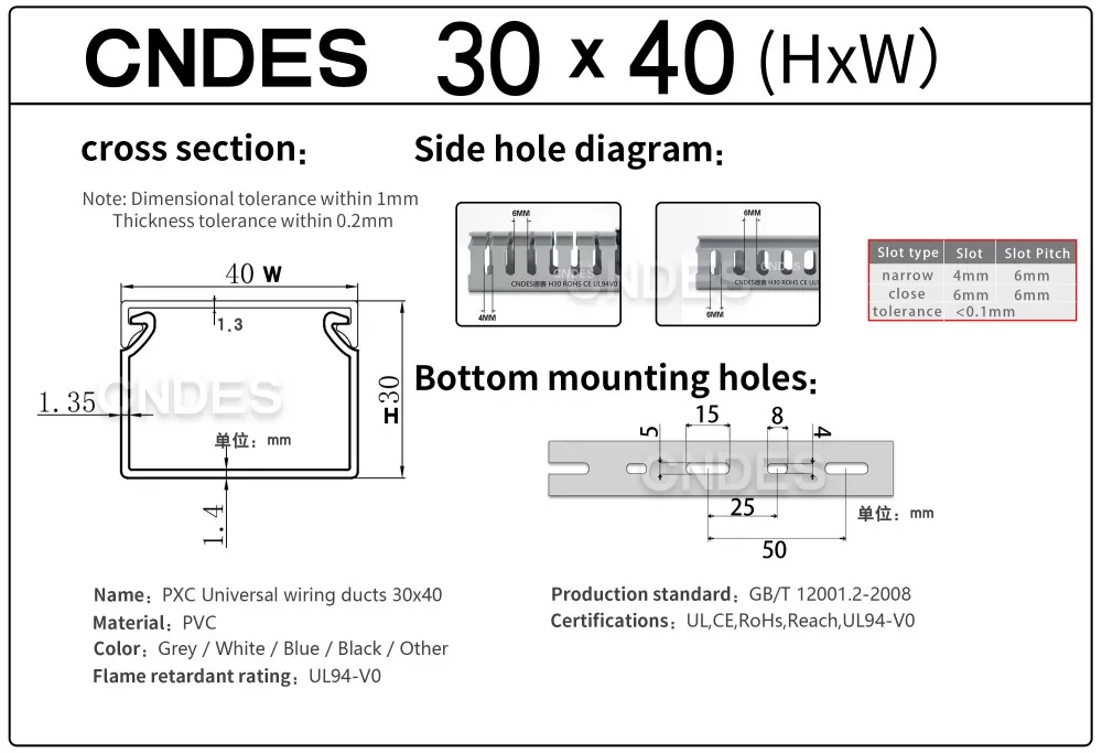 Ο εξατομικευμένος αγωγός διαχείρισης καλωδίων PVC με σχισμή ύψους 30 mm από την CNDES έχει σχεδιαστεί για αποτελεσματική, συμπαγή και ασφαλή δρομολόγηση καλωδίων σε μια ποικιλία βιομηχανικών, εμπορικών και οικιστικών ρυθμίσεων. Ιδανικός για εφαρμογές με στενούς περιορισμούς χώρου, αυτός ο αγωγός διασφαλίζει ότι η καλωδίωση σας είναι οργανωμένη, προστατευμένη και εύκολα προσβάσιμη.