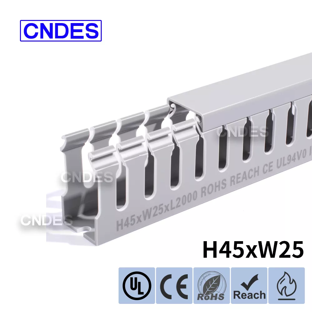 Παρουσιάζουμε τον προσαρμοσμένο αγωγό καλύμματος από σύρμα PVC με σχισμή 45 mm από την CNDES, τη λύση σας για αποτελεσματική διαχείριση καλωδίων σε ποικίλες εφαρμογές. Είτε σχεδιάζετε έναν νέο ηλεκτρικό πίνακα, είτε βελτιώνετε τη ρύθμιση της καλωδίωσης του μηχανήματος σας είτε βελτιώνετε το ηλεκτρικό σύστημα του σπιτιού σας, ο αγωγός καλύμματος σύρματος PVC με σχισμή ύψους παρέχει την τέλεια ισορροπία μεταξύ λειτουργικότητας και αισθητικής.