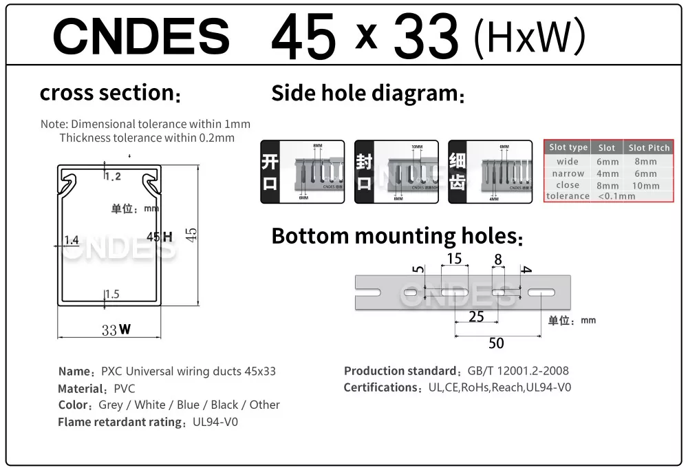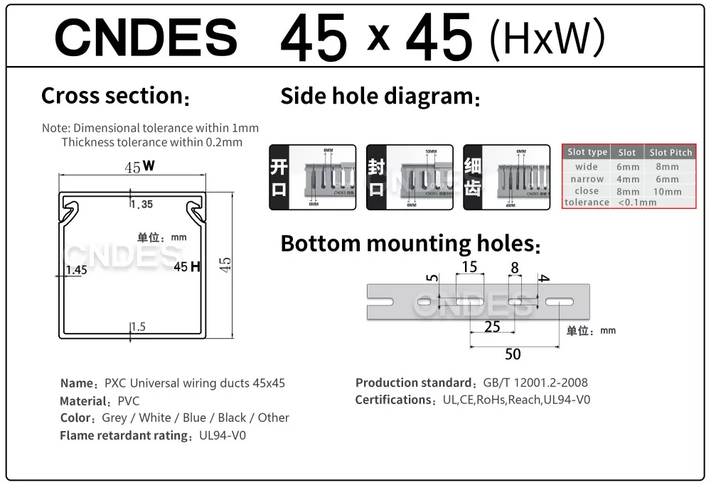 Ως επαγγελματίας κατασκευαστής, θα θέλαμε να σας παρέχουμε αγωγό καλύμματος από σύρμα PVC με σχισμή CNDES ύψους 45 mm. Συμπεριλαμβανομένων 45*25, 45*33, 45*45.