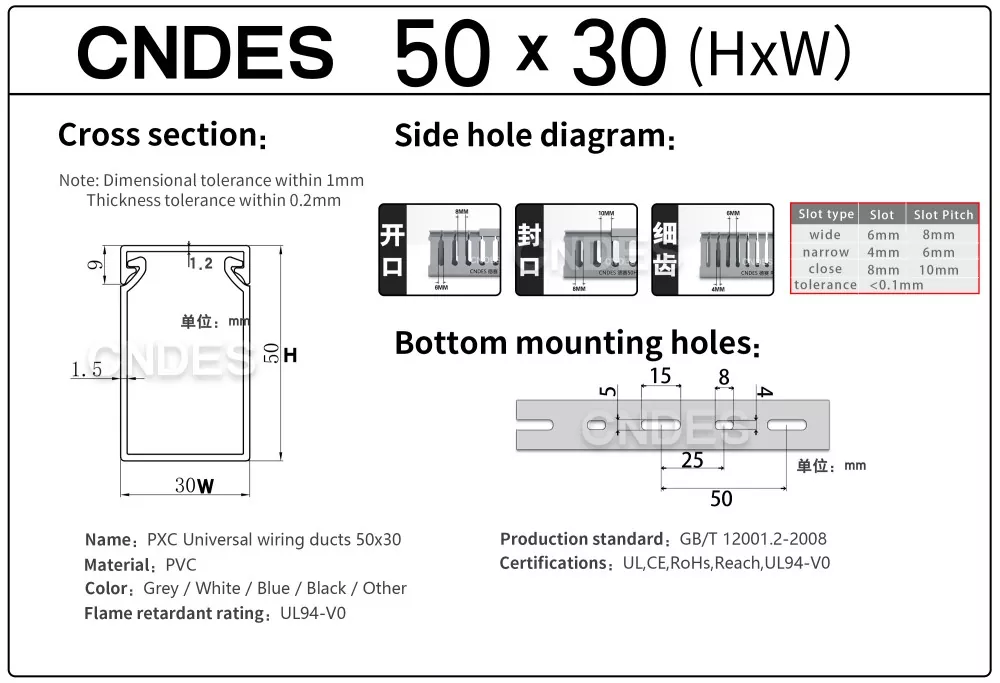Ο αγωγός οργάνωσης καλωδίων PVC με σχισμή ποιότητας 50×30 από την CNDES είναι μια συμπαγής, αποτελεσματική λύση για τη διαχείριση καλωδίων σε στενούς χώρους, όπως μικρά ντουλάπια ελέγχου, περιβλήματα δεδομένων και κουτιά διακλάδωσης εξοπλισμού. Αυτός ο αγωγός καλωδίωσης λεπτού προφίλ επιτρέπει στους εγκαταστάτες να οργανώνουν, να διαχωρίζουν και να προστατεύουν τα καλώδια χωρίς να καταλαμβάνουν υπερβολικό χώρο στο πάνελ.