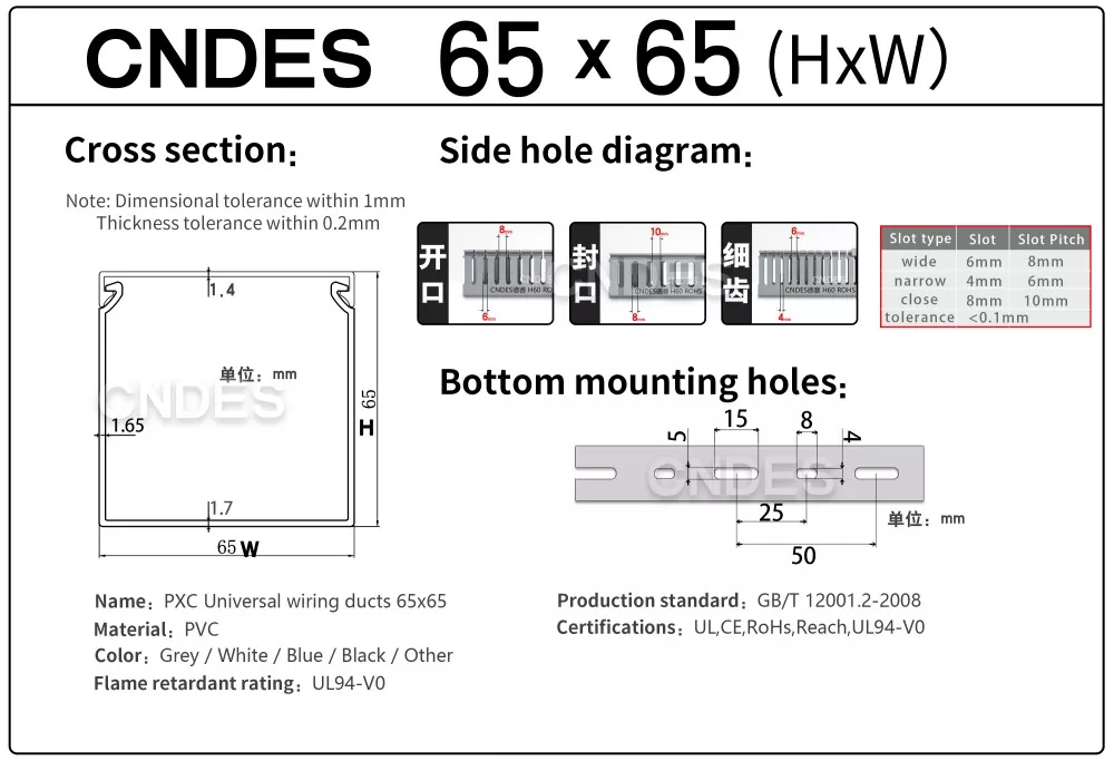 Ως επαγγελματίας κατασκευαστής, θα θέλαμε να σας παρέχουμε CNDES με σχισμή 65×65 PVC Cable Raceway.