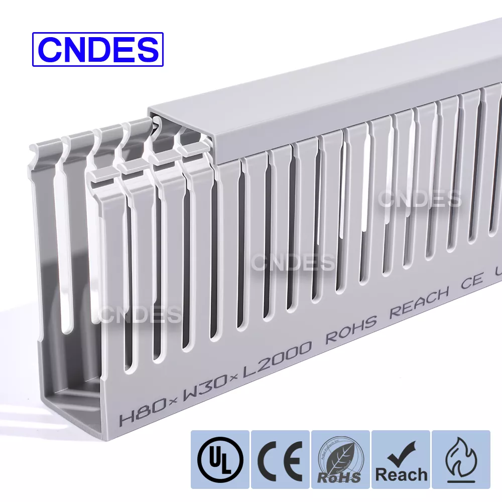 Οι αγωγοί καλωδίωσης PVC υψηλής απόδοσης 80×30 ανοιχτής υποδοχής της CNDES είναι σχεδιασμένοι για αποτελεσματική, οργανωμένη και ευέλικτη διαχείριση καλωδίων σε βιομηχανικούς πίνακες ελέγχου, ηλεκτρικά ερμάρια και ντουλάπια αυτοματισμού. Με ύψος μόνο 30 mm και πλάτος μόλις 80 mm, αυτοί οι συμπαγείς αγωγοί παρέχουν μια λύση διαχείρισης καλωδίων υψηλής πυκνότητας ενώ διευκολύνουν την εγκατάσταση, τη συντήρηση και τις μελλοντικές αναβαθμίσεις.