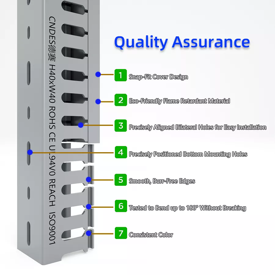 Η CNDES είναι ένας αξιόπιστος κατασκευαστής και προμηθευτής δίσκου καλωδίων PVC στην Κίνα. Εξασφαλίζουμε σταθερή ποιότητα προϊόντων, ακριβή απόσταση θυρίδων και συμμόρφωση με τα πρότυπα UL, CE, RoHS και REACH, κατάλληλα για έργα τόσο στο εσωτερικό όσο και στο διεθνές.