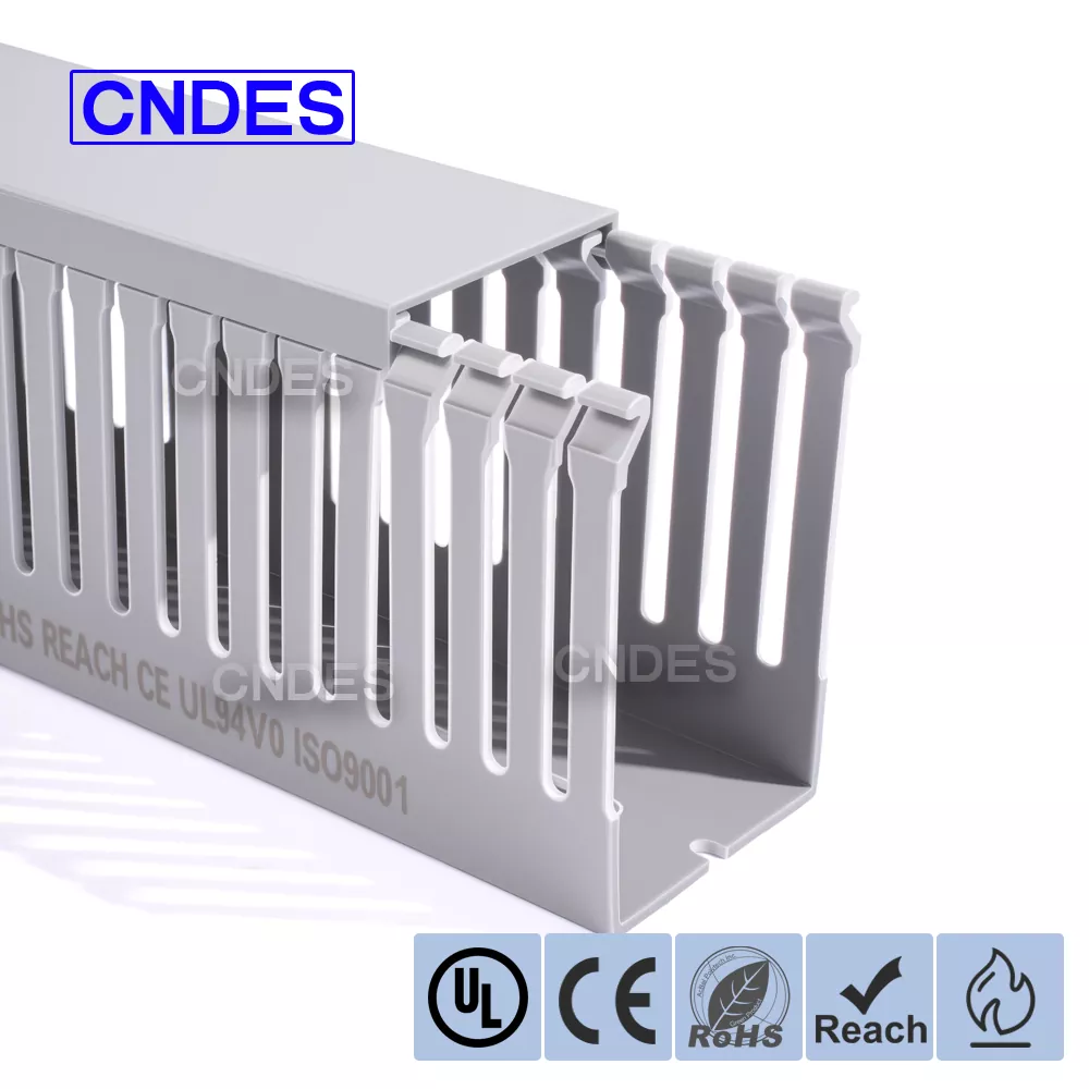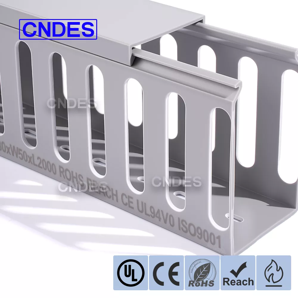 Η CNDES είναι επαγγελματίας κατασκευαστής δίσκων καλωδίων με σχισμές PVC που βρίσκεται στην Κίνα. Εδώ, θα παρουσιάσουμε τον οργανωτή καλωδίων πάνελ PVC με αυλακώσεις 80×50, όπου το 80*50 mm αντιπροσωπεύει έναν δίσκο καλωδίων με ύψος 80 mm και πλάτος 50 mm.