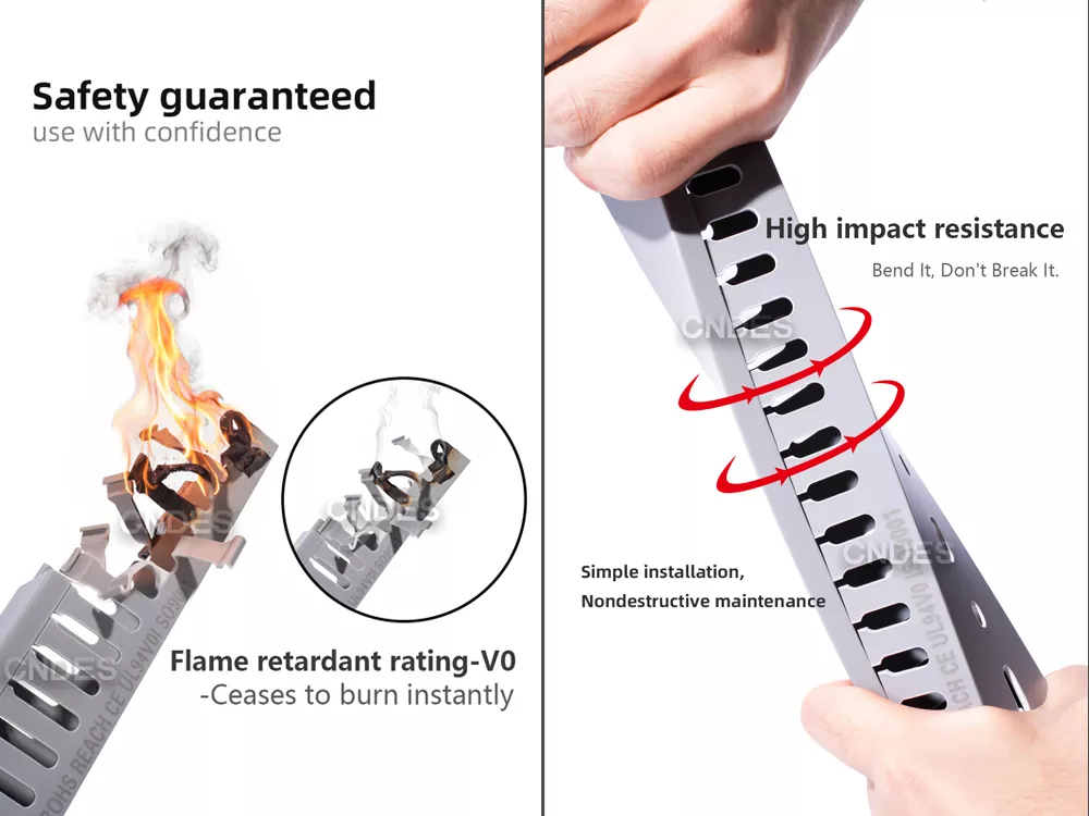 Ο οργανωτής καλωδίων πάνελ PVC με σχισμή 80×50 είναι φιλικός προς το περιβάλλον, επιβραδυντικός στη φωτιά και εξαιρετικά ανθεκτικός στην κρούση και έχει περάσει πολλές έγκυρες πιστοποιήσεις.