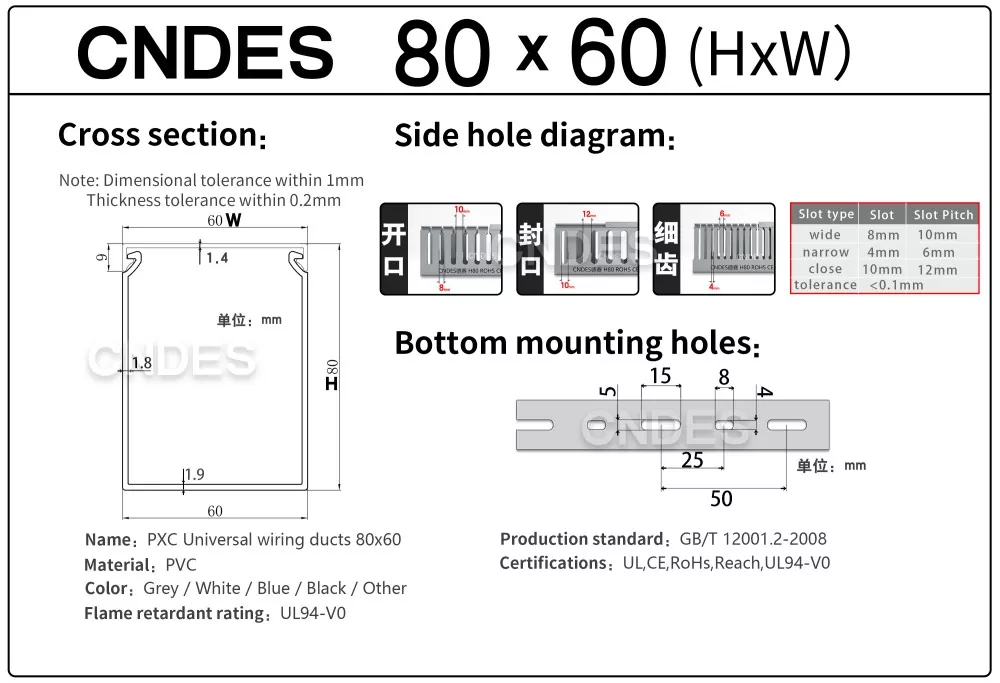 Διασφάλιση ποιότητας: Όλοι οι αγωγοί καλωδίων αυτοματισμού PVC με σχισμή ύψους 80 υψηλών επιδόσεων είναι πιστοποιημένοι σύμφωνα με τα πρότυπα UL, RoHS, REACH, ISO, CE και άλλα πρότυπα, που πληρούν τις περιβαλλοντικές απαιτήσεις και τις απαιτήσεις ασφάλειας. Για θέματα ποιότητας (π.χ. ρωγμές, παραμόρφωση), οι προμηθευτές παρέχουν υπηρεσίες επιστροφής/ανταλλαγής.