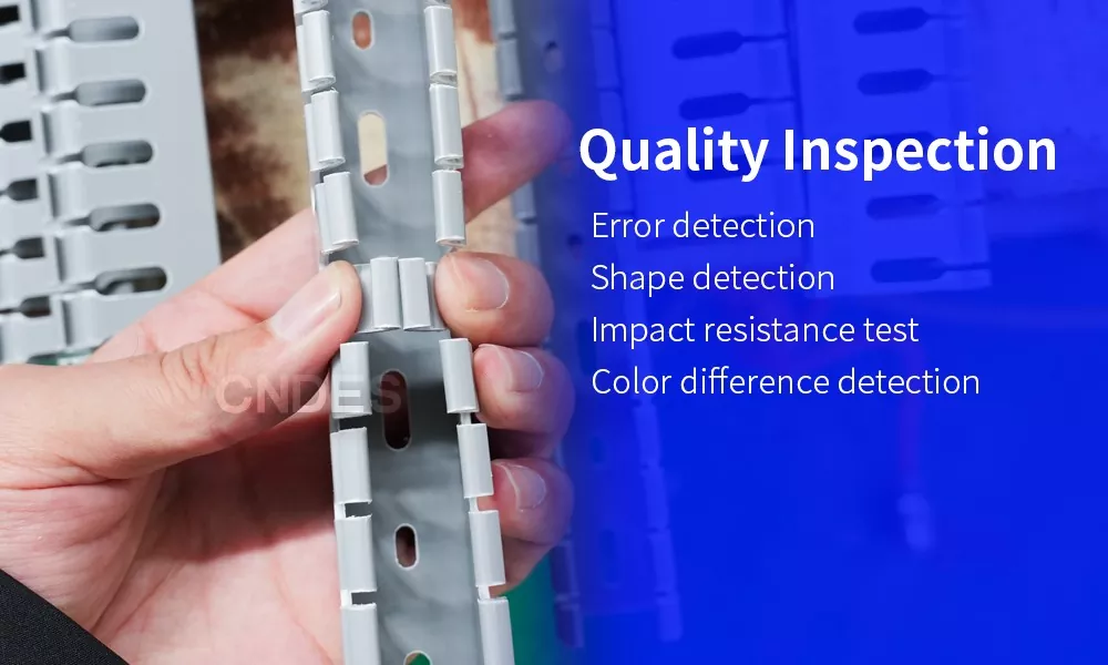 Ο έλεγχος ποιότητας υψηλών προδιαγραφών είναι απαραίτητος για την παροχή καλών προϊόντων. Στη CNDES, η επιδίωξή μας για ποιότητα είναι ατελείωτη. Δεν φείδουμε καμία προσπάθεια για να παρέχουμε στους πελάτες μας αξιόπιστα προϊόντα. Έχουμε τέσσερις επιθεωρητές ποιότητας που εργάζονται σε βάρδιες για τη διεξαγωγή διαδικτυακών επιθεωρήσεων των προϊόντων μας. Αυτό διασφαλίζει ότι οι αγωγοί καλωδίων αυτοματισμού PVC με σχισμή 80 ύψους έχουν τετράγωνο σχήμα, έχουν λείες επιφάνειες και πληρούν τα αποδεκτά πρότυπα σκληρότητας,