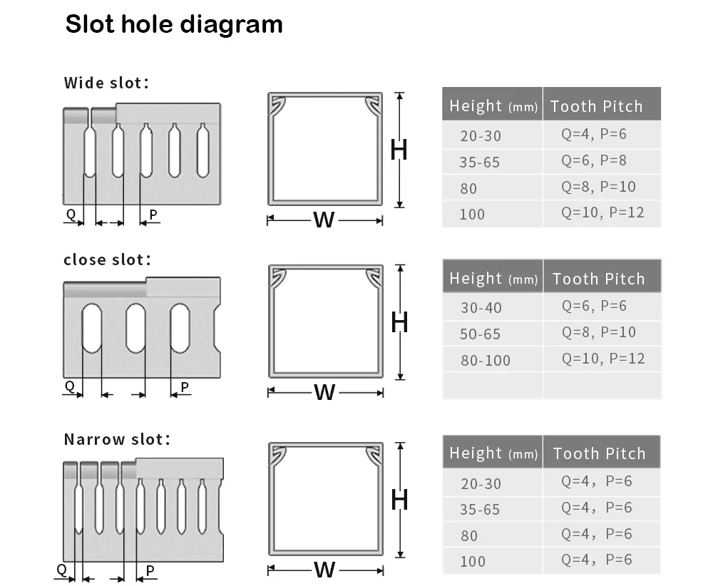 Οι Προσαρμοσμένοι αγωγοί καλωδίωσης PVC με λευκές αυλακώσεις που παράγονται από την εταιρεία μας έχουν προεπιλεγεί να είναι ασημί λευκό, αλλά μπορούν επίσης να προσαρμοστούν ώστε να είναι καθαρό λευκό ή υπόλευκο. Προσφέρουμε προφίλ υποδοχής όπως ευρεία υποδοχή, στενή υποδοχή, κλειστή υποδοχή και συμπαγής τοίχος για την επιλογή σας.